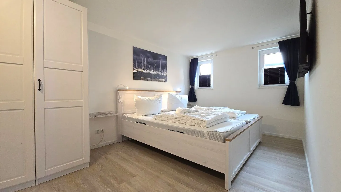 Für erholsamen Schlaf sorgen zwei komfortable Schlafzimmer. Das erste Schlafzimmer ist mit einem gemütlichen Doppelbett ausgestattet und bietet ausreichend Stauraum für eure Urlaubsgarderobe. Im zweiten Schlafzimmer stehen zwei Einzelbetten bereit – ideal für Kinder, Freunde oder zusätzliche Gäste. Beide Schlafzimmer verfügen über Fernseher und lassen sich angenehm verdunkeln, damit ihr nach einem erlebnisreichen Tag wunderbar zur Ruhe kommt.