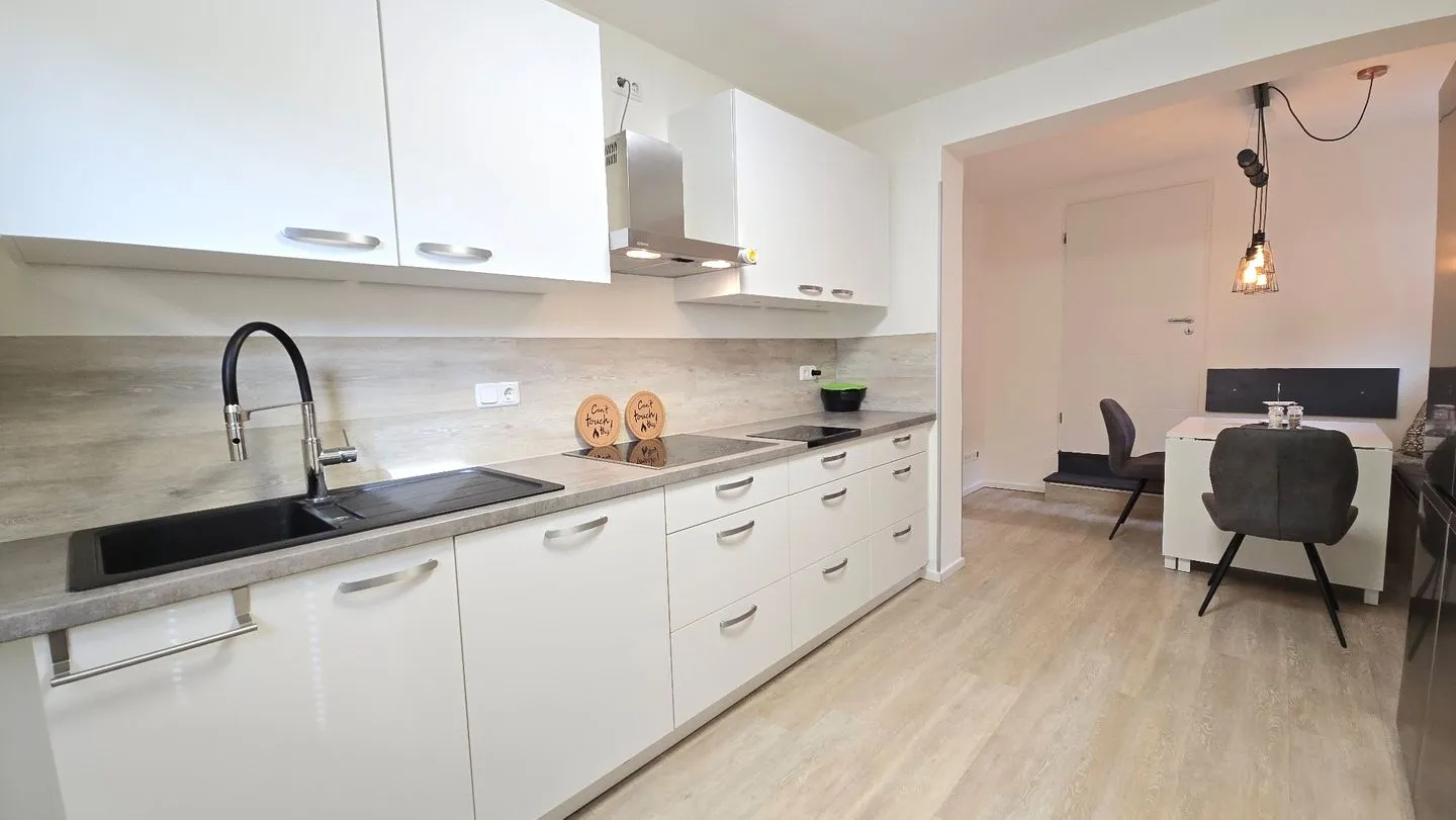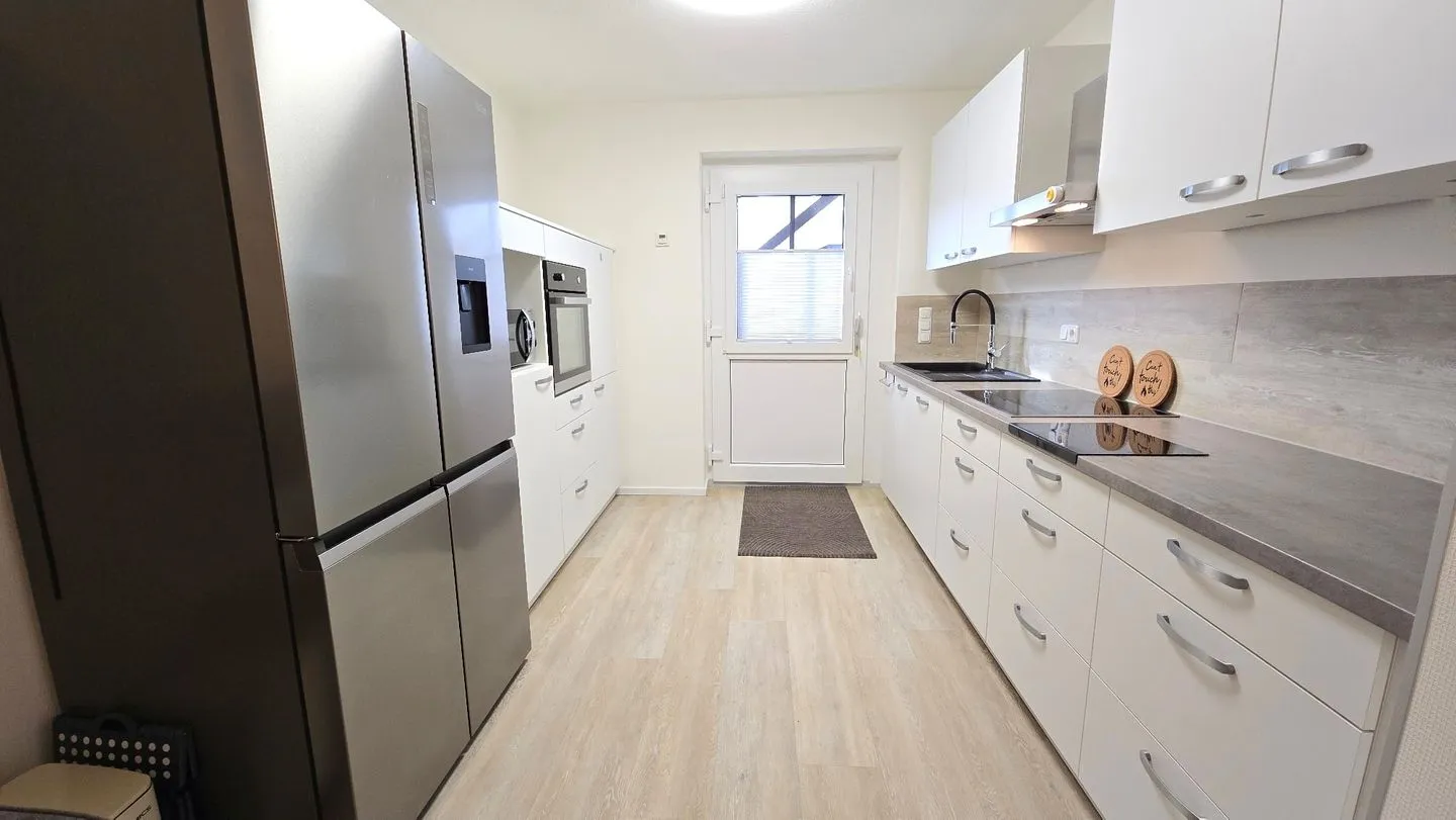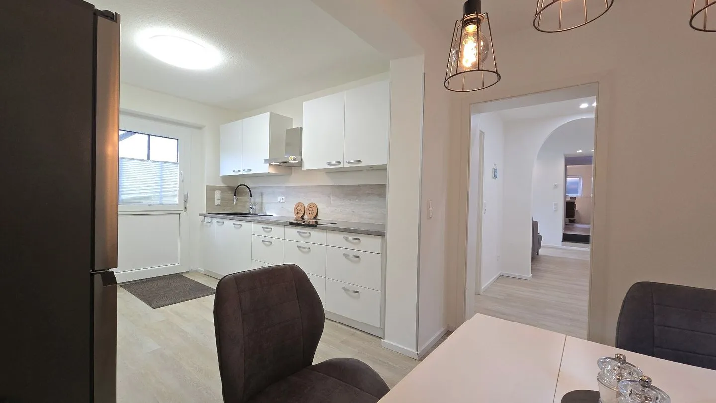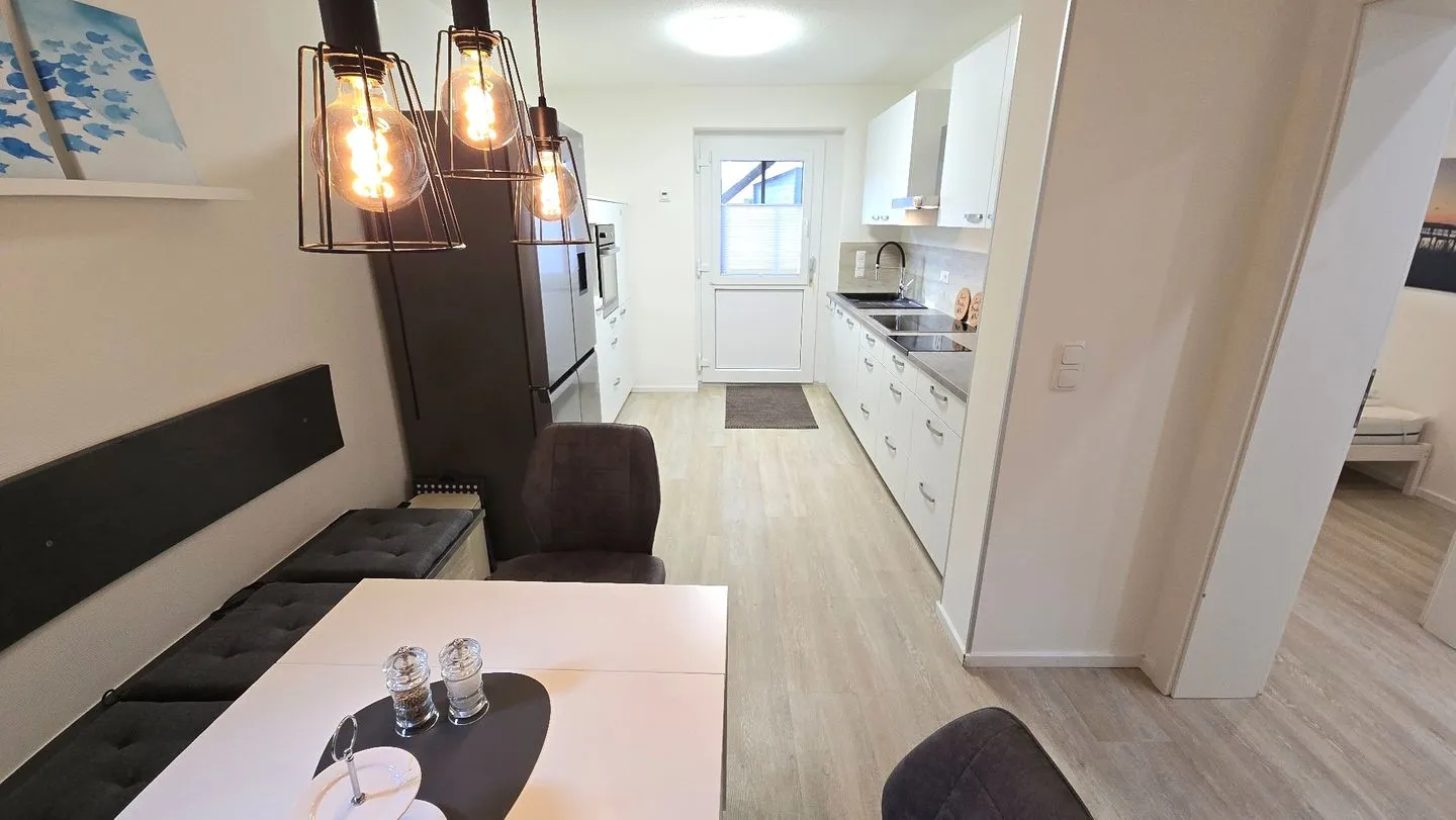 Die moderne, großzügige Küche bietet euch viel Platz und Komfort für gemeinsames Kochen. Am gemütlichen Essplatz könnt ihr gemeinsam frühstücken, den nächsten Ausflug planen oder den Abend entspannt ausklingen lassen.