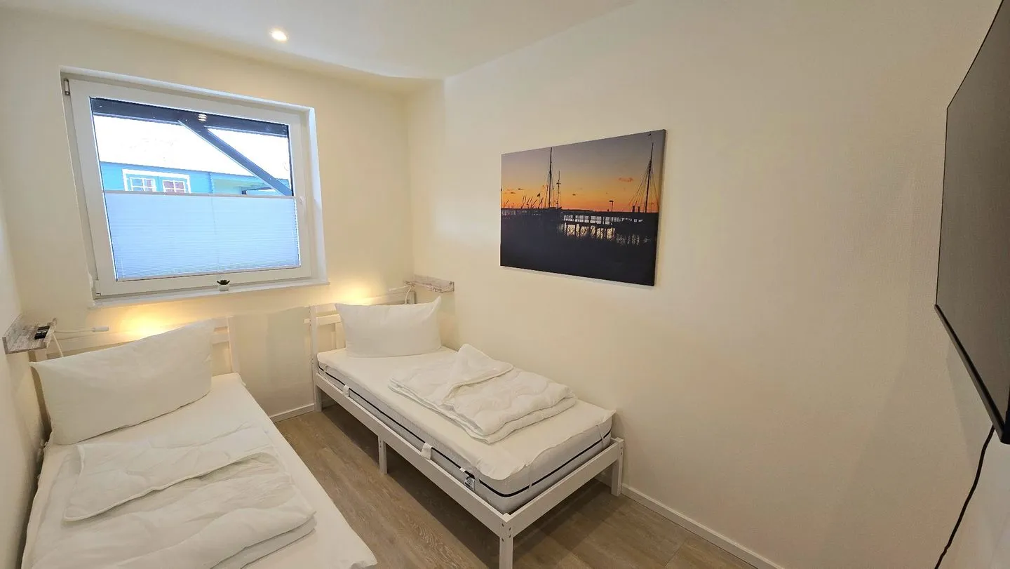 Schlafzimmer II: 2 Einzelbetten / Fernseher / Plissees